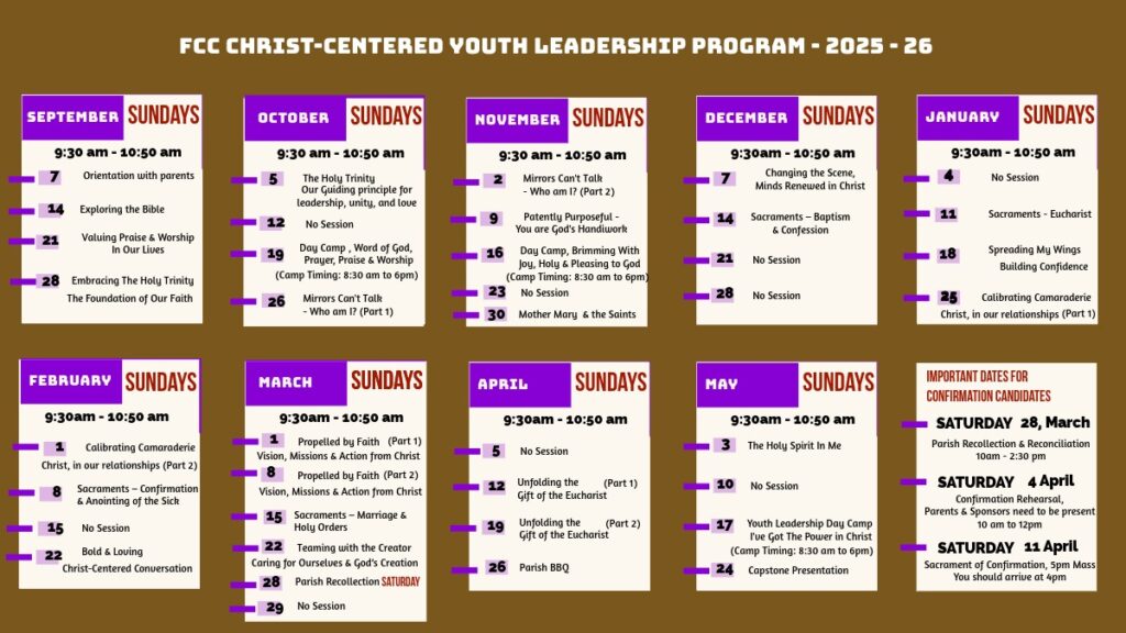 The Christ-Centered Youth Leadership Programme at FCC is underway this term. The leadership programme is based on Gospel values and the teachings of the Catholic Church.