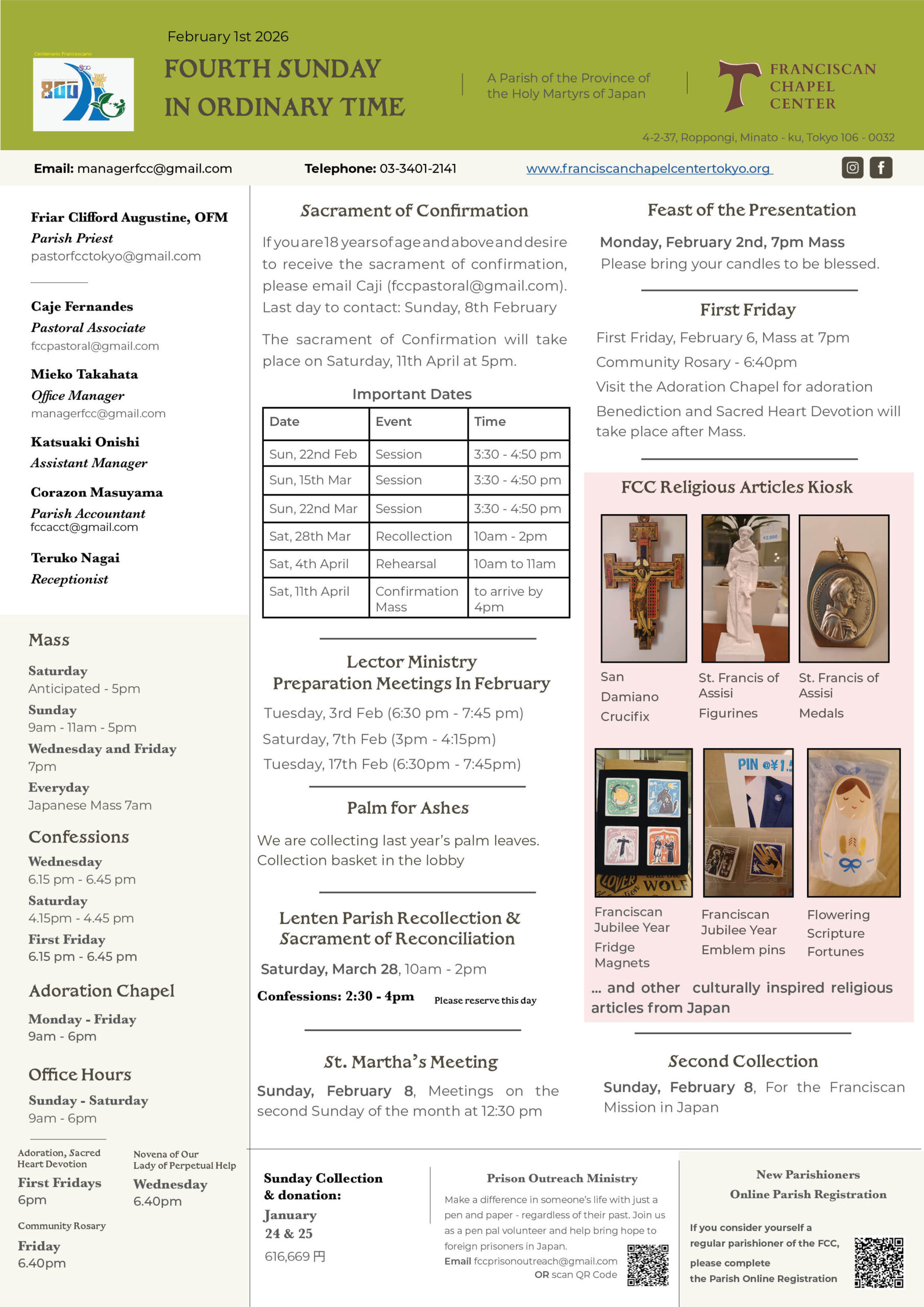 Weekly Mass and Service Times